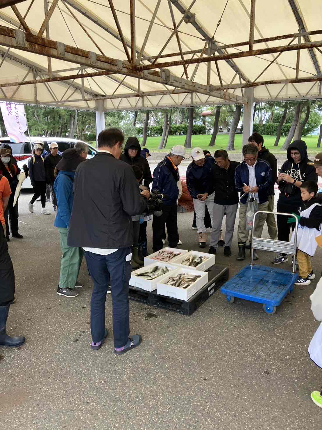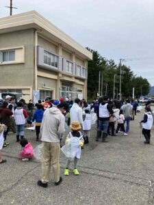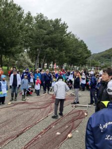 本来は地曳網を実施する予定でしたが、天候に恵まれず残念ながら地曳網は中止になったにも関わらず大勢の方が集まっていただきました。